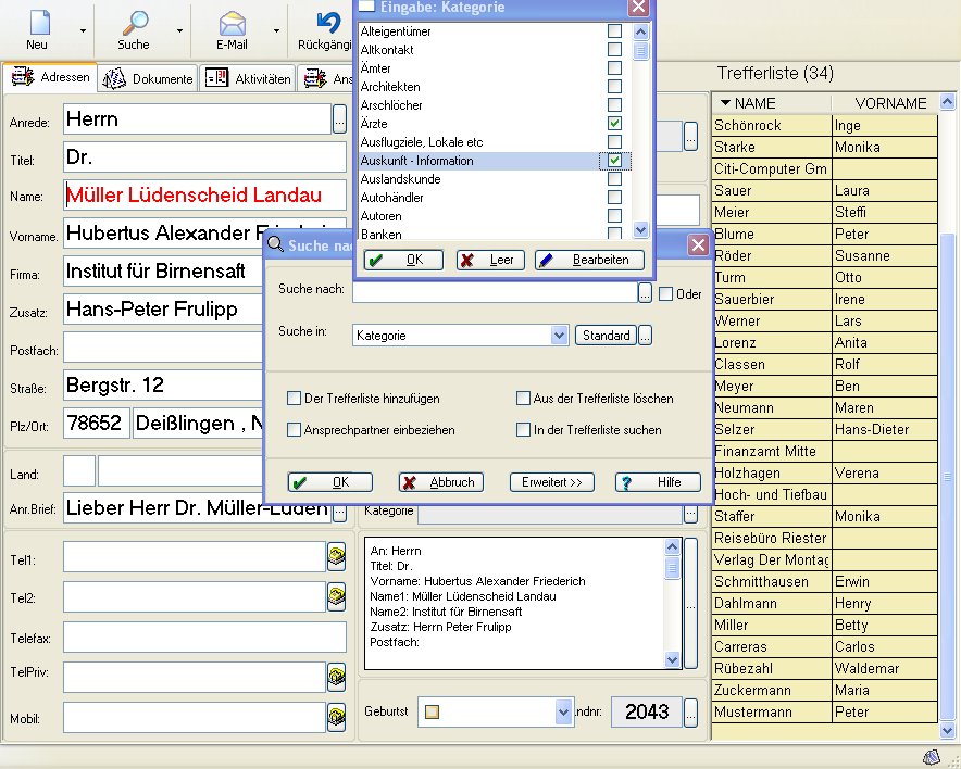 ![]() Abb: Mehrfachänderungen: Datenbank, Kategorie, Ort, Land, Memo |